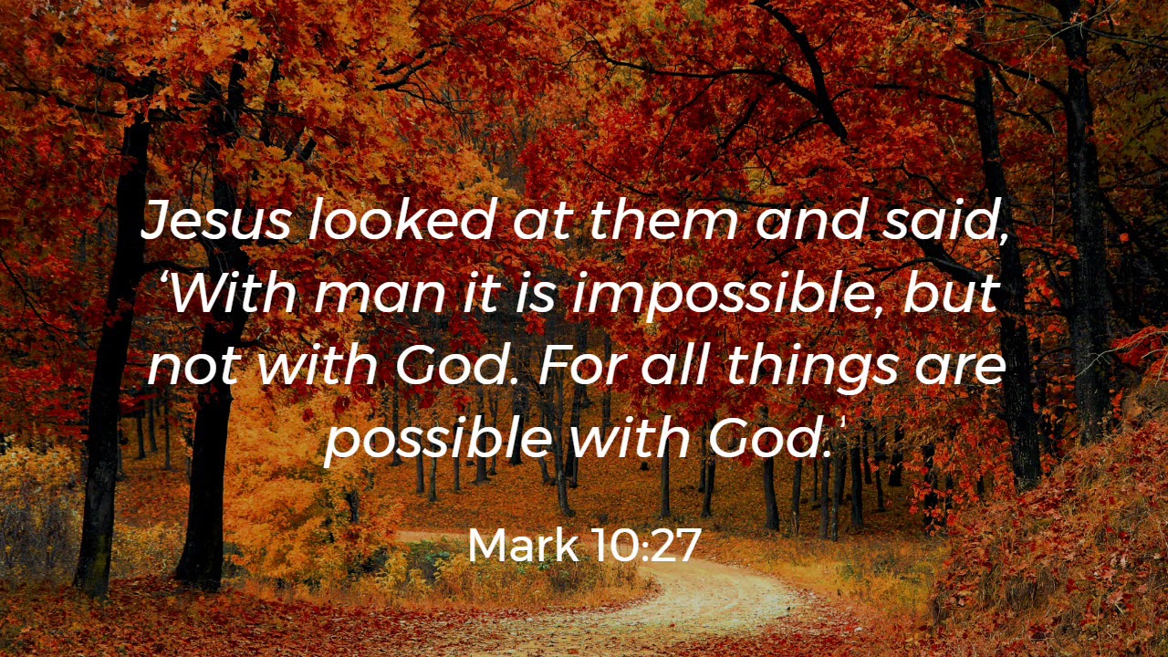 Jesus looked at them and said, “With man this is impossible, but not with God; all things are possible with God.” (Mark 10:17-27 NIV)